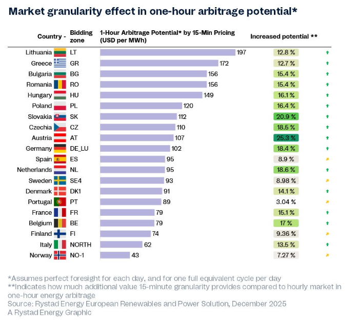 In Lithuania, shifting energy over 15 minutes yielded approximately $263 per megawatt-hour (MWh), which was a 14% increase compared to hourly trading.